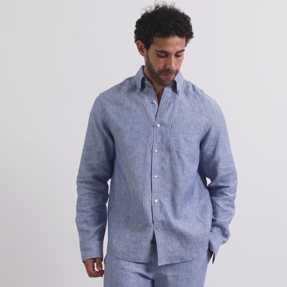 A coastal classic with understated tailoring. The Harbor Shirt pairs long sleeves with pure linen comfort for effortless refinement.